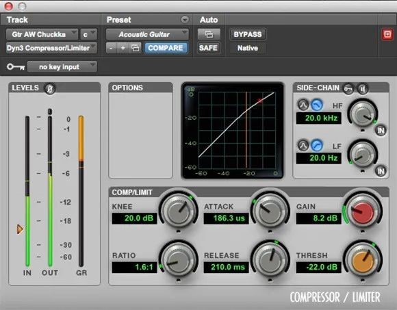 從三種壓縮模式中選擇,包括模擬經(jīng)典electro-optical限制器的模式