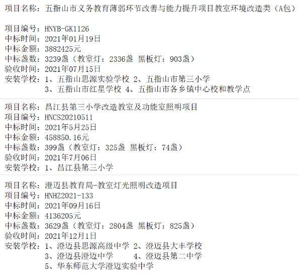 包括入選 2021 年7 月5 日海南省教育廳公布的 20 所海南省兒童青少年近視防控示范學(xué)校之一的五指山中學(xué)燈光改造(含教室、宿舍及功能室)。