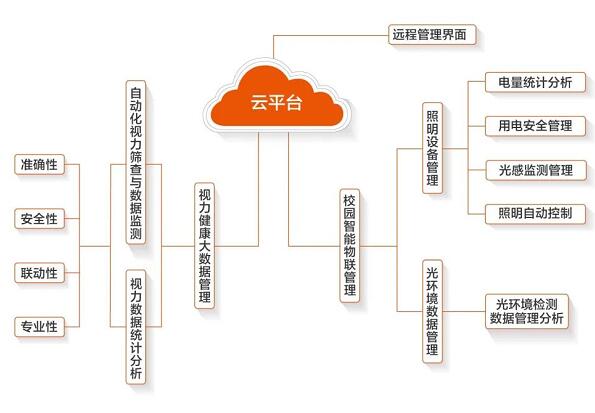 科學(xué)防控兒童青少年近視近視防控綜合管理云平臺(tái)集視力篩查數(shù)據(jù)管理、光環(huán)境數(shù)據(jù)管理、節(jié)能管理、設(shè)備自動(dòng)化于一體。通過智慧物聯(lián)新技術(shù),可遠(yuǎn)程控制開關(guān),自動(dòng)采集測量,實(shí)時(shí)監(jiān)控?cái)?shù)據(jù),實(shí)現(xiàn)兒童青少年近視防控的智能化管理。
