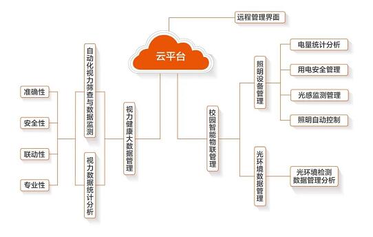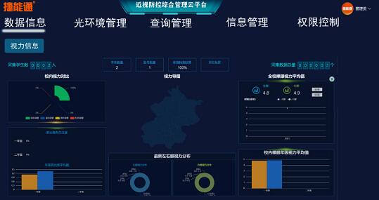 捷能通與科技公司開展深度合作,搭建近視防控綜合管理云平臺,該平臺集視力篩查數據管理、光環境數據管理、節能管理、設備自動化于一體。通過智慧物聯新技術、可遠程控制開關、自動采集測量、實時監控數據,實現兒童青少年近視防控的智能化管理。