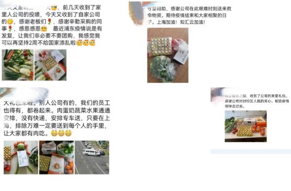 小伙伴們也紛紛通過社交媒體表達感謝!疫情當下,知匯云的員工更切身感受到了來自公司的溫暖。