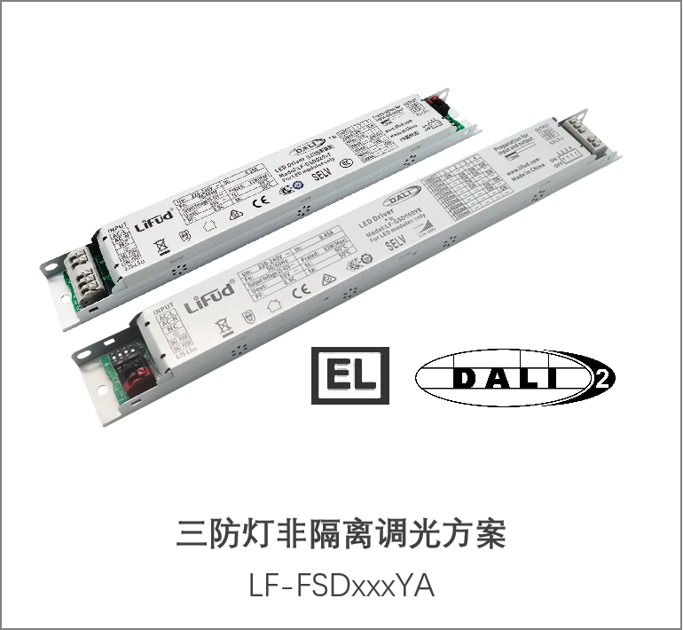 LF-FSDxxxYA是萊福德即將上市的一款非隔離DALI&Push條形調光電源,產品帶外接電阻接口,可自定義電流設定,且可接入軟件自定義緩啟動等調光參數。產品擁有37/60/90YA三個系列型號,功率涵蓋18-90W。