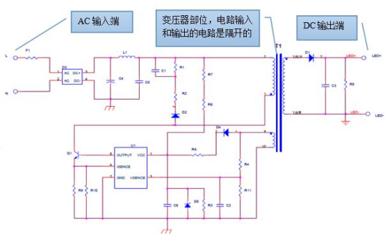 非隔離方案——電路設計上使用電感等元器件將高壓進行降壓后整流成直流電輸出,整個過程過程是“電-電”的轉換。