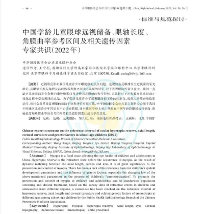 近日,王寧利教授團隊在《中華眼科雜志》連續發表兩篇論文“小學生遠視儲備與近視眼發病率關系的隊列研究:安陽兒童眼病研究”和“中國學齡兒童眼球遠視儲備、眼軸長度、角膜曲率參考區間及相關遺傳因素專家共識(2022年)”,明確了小學生遠視儲備越高與近視眼累積發病率低的因果關系,形成了中國學齡兒童眼球遠視儲備、眼軸長度、角膜曲率參考區間及相關遺傳因素專家共識,并對于通過監測兒童遠視儲備進而指導近視防控具有重要意義。