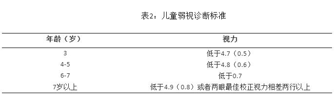 需要強調的是,在兒童眼球發育過程中,視力和屈光度的發育是相互匹配的。如果遠視儲備在正常范圍內,還應關注兒童的視力情況,如果視力低于正常年齡范圍,應注意兒童是否患有弱視(表2)。