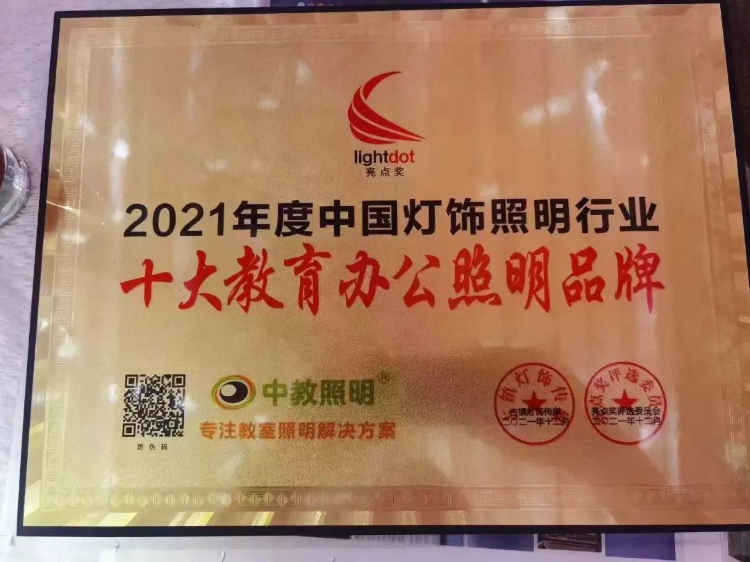 此次活動共收到上百萬次網(wǎng)絡(luò)投票,并經(jīng)過專家層層嚴(yán)格評選,中教照明榮膺亮點獎“2021年度行業(yè)十大教育辦公照明品牌”!