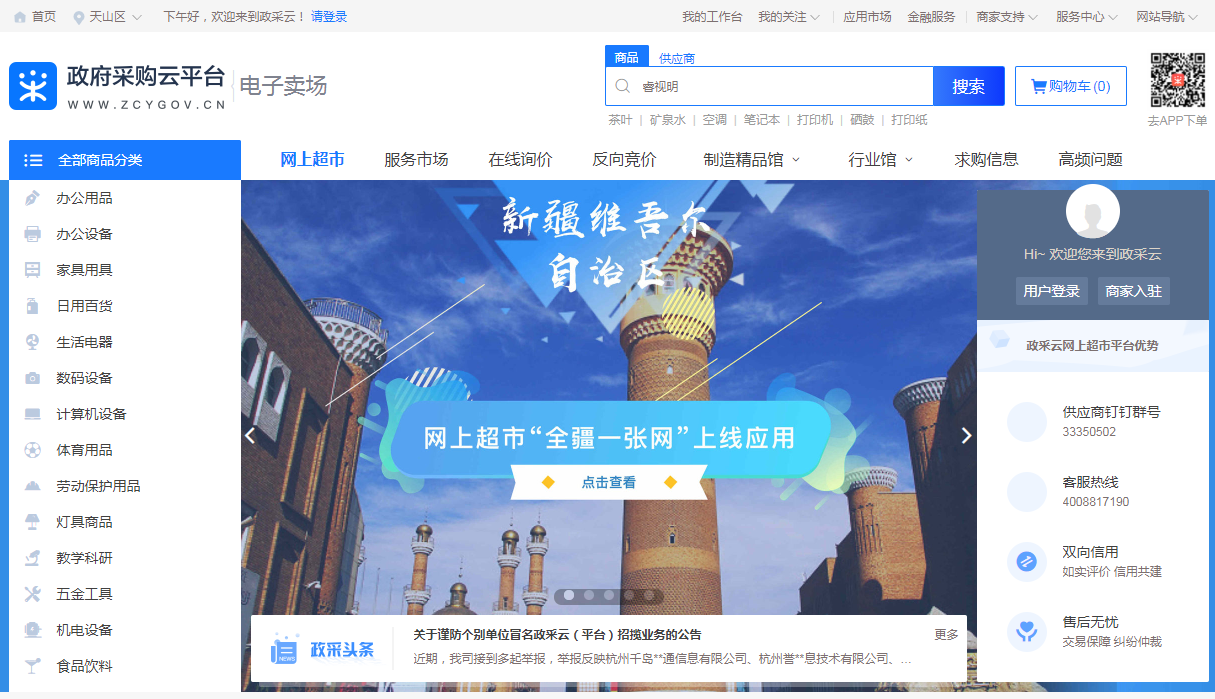 政采云平臺是全國首個經財政部批準,按云計算框架搭建的政府電子賣場試點項目。集政府采購網上交易、網上監管、和網上服務于一體,實現從采購需求發起,到資產入庫的全流程無紙化辦公,對接信息發布系統,解決了采購需求、計劃管理、合同會簽等線上應用難題,方便零散客戶進行采購。