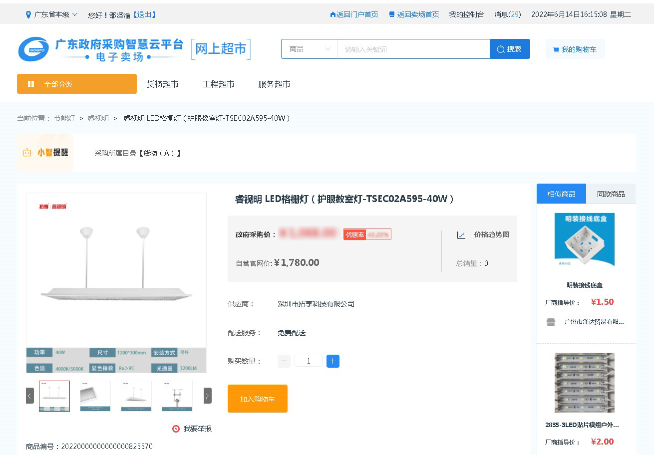 拓享睿視明丨教室燈上架國家政采云平臺