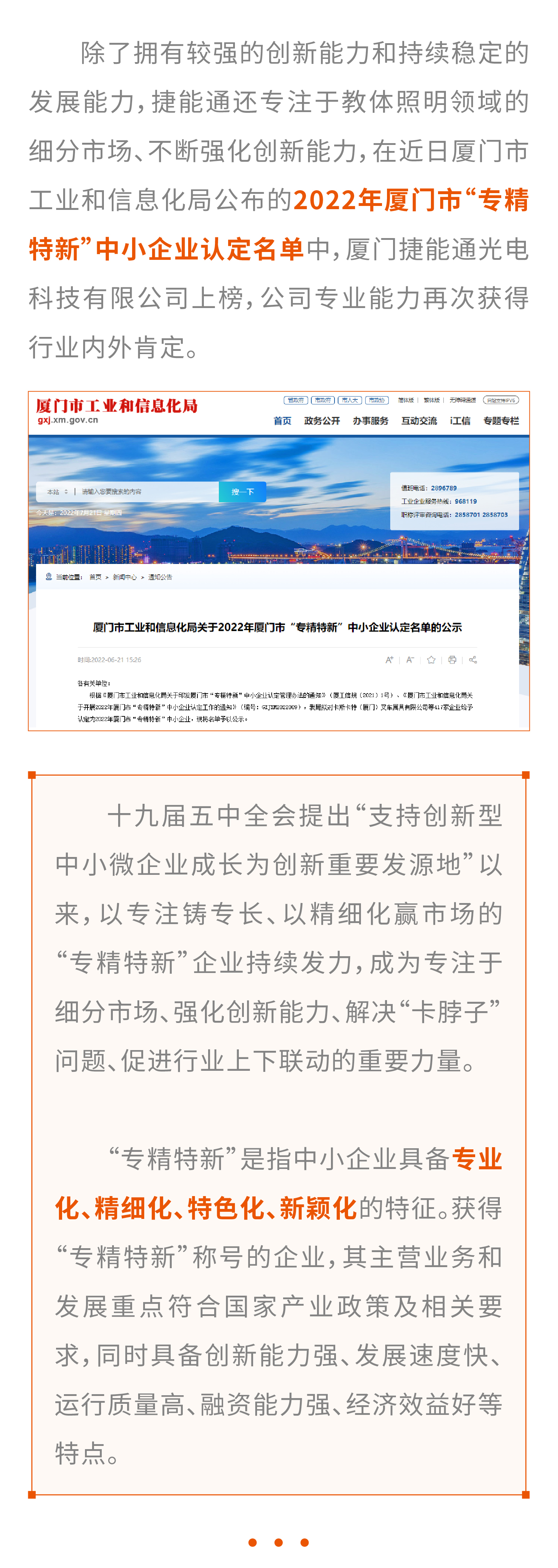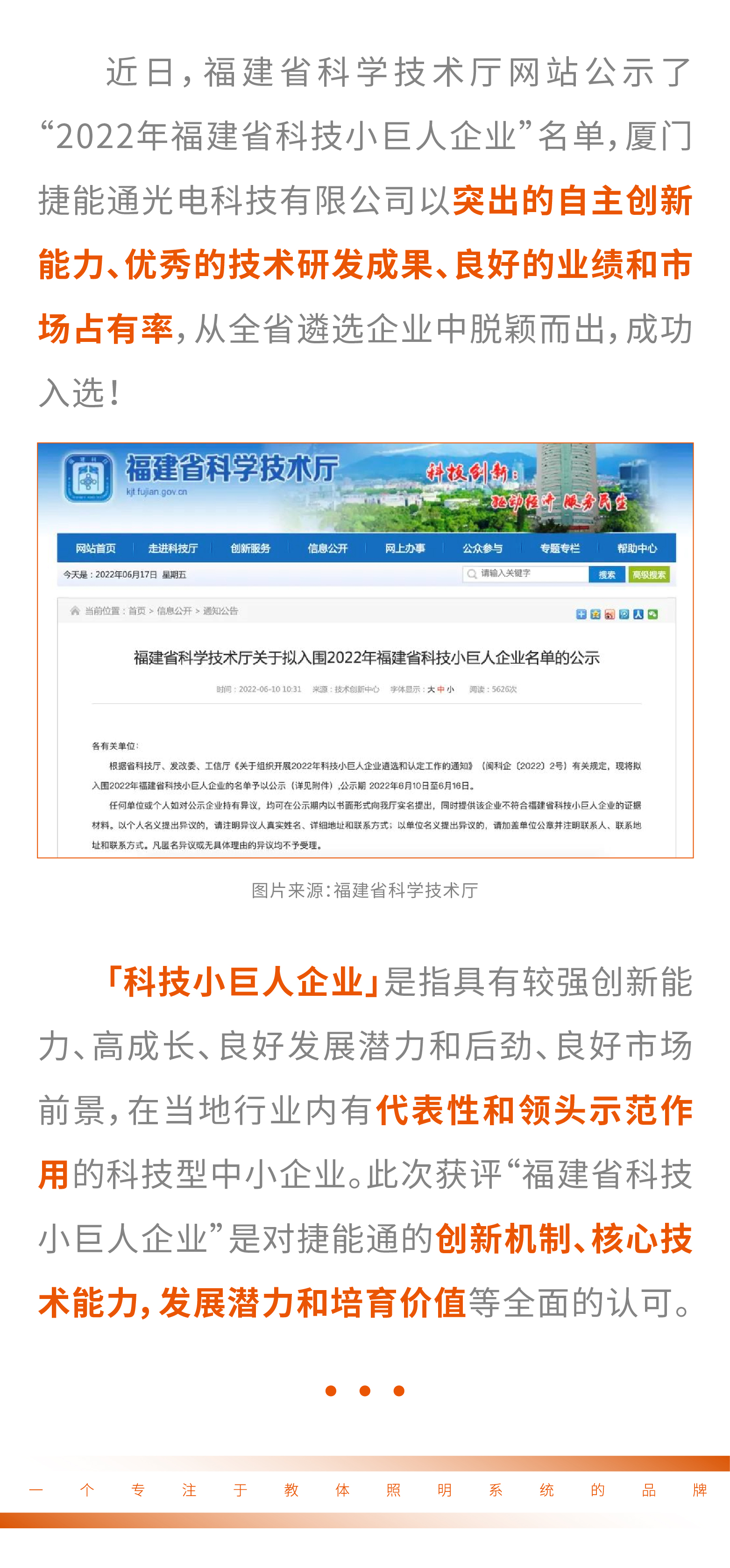 喜報連連!捷能通被評為2022年福建省科技小巨人企業、廈門市“專精特新”中小企業!