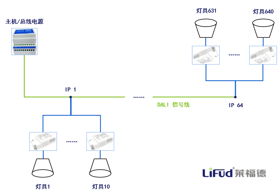 雖然DALI調光會在普通照明線路上增加2條DALI信號線,但由于DALI信號線不分正負,故一般了解各部件所需的供電線路后,就不容易接錯了,具體可查看參照萊福德往期分享,簡單4步即可完成DALI系統接線。