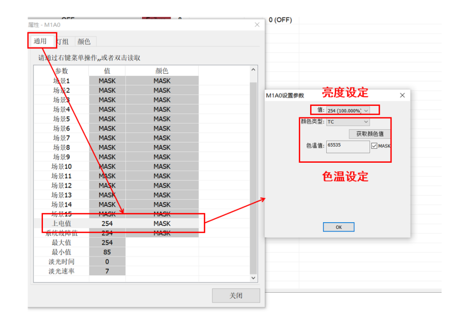 上電時狀態、亮度值
