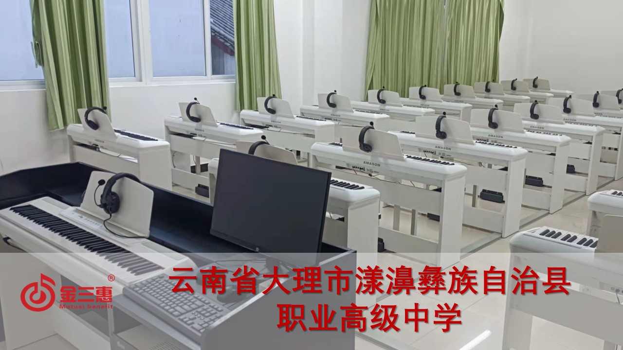云南省大理市漾濞彝族自治縣職業(yè)高級中學的數字音樂電鋼琴教室開始使用,由北京金三惠科技有限公司負責提供、安裝、培訓。
