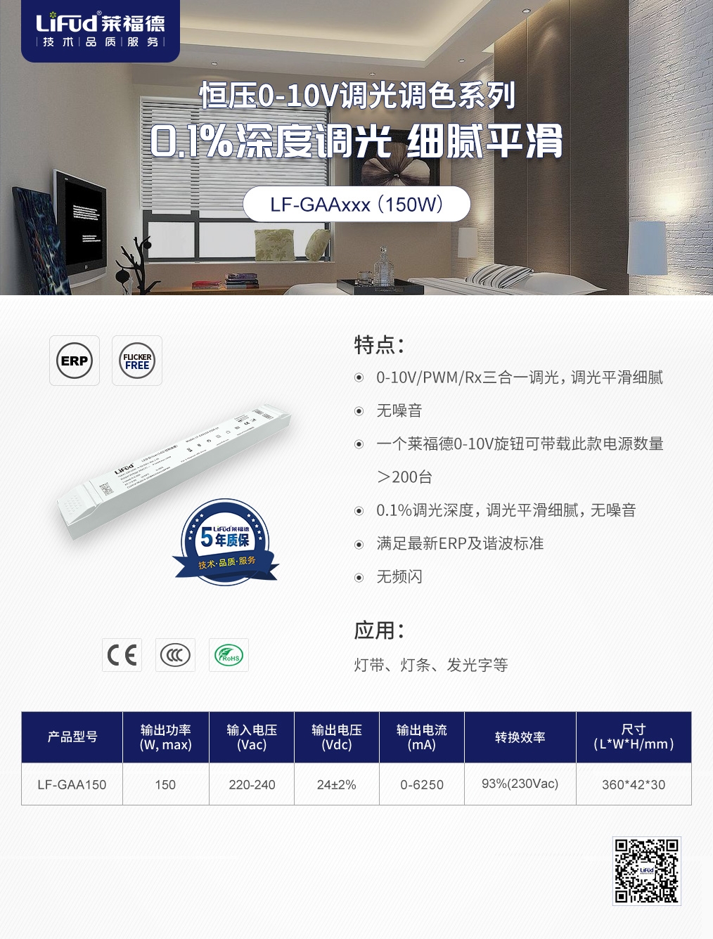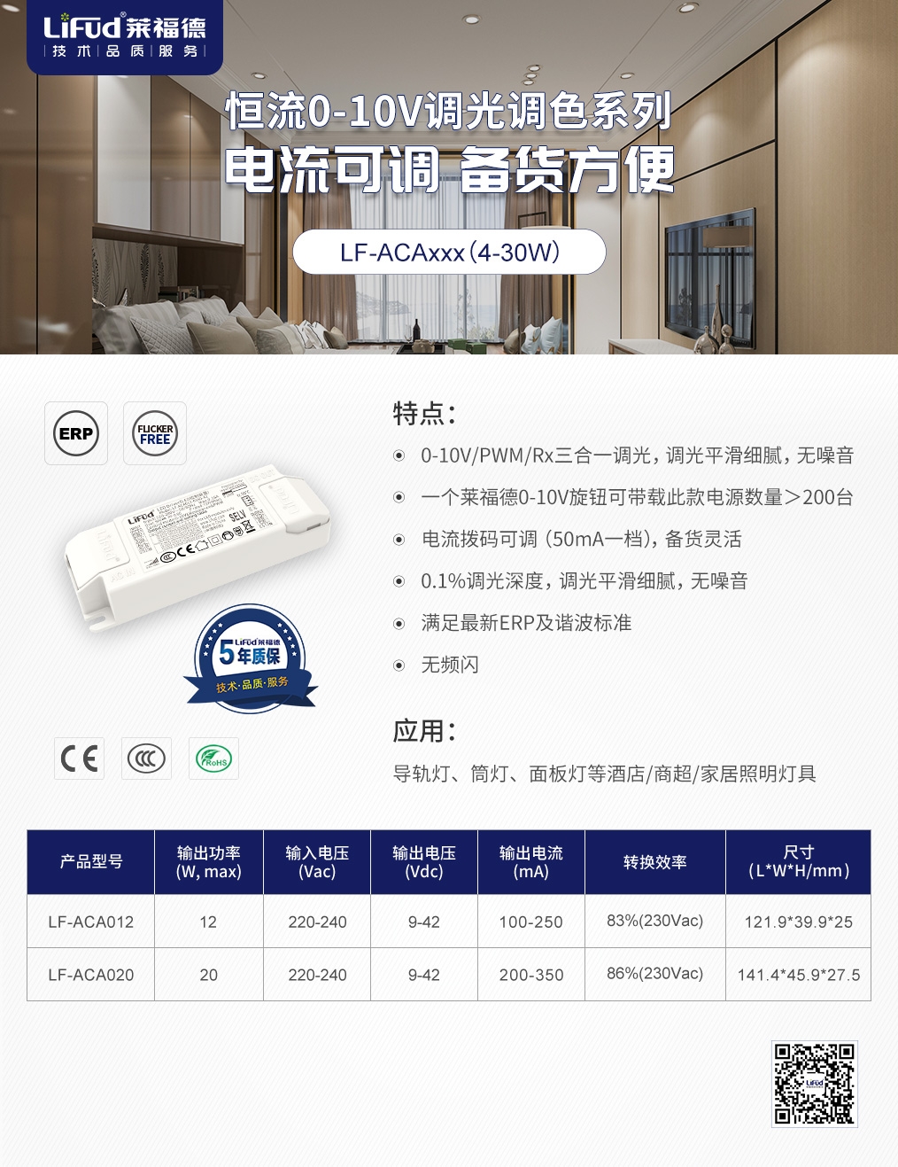 恒流4-80W、恒壓40-240W、條形鐵殼、方形塑殼、內置外置……,點擊下圖,了解更多萊福德0-10V調光電源解決方案!
