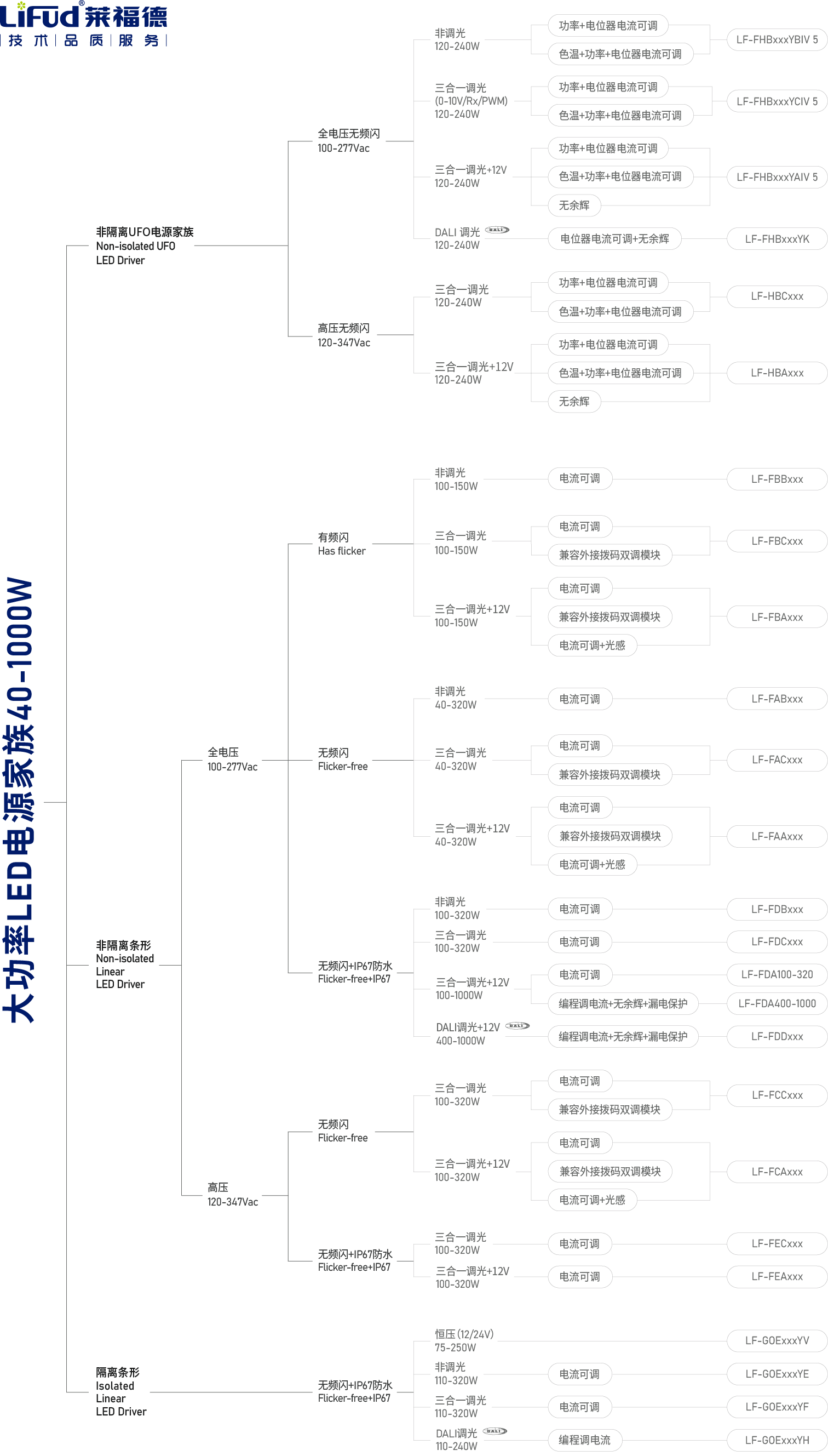 2017年到2023年,萊福德在非隔離技術上的不斷革新,讓萊福德對非隔離技術應用更加成熟,7年時間,萊福德不僅始終堅持完善并解決非隔離UFO電源市場應用痛點,還通過領先的非隔離技術,為高效率、節能、小型化戶外燈具推出了40-1000W解決方案!