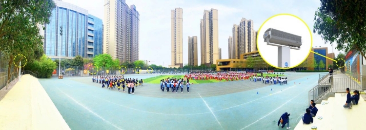 經前期實地調研,西安經開第一學校操場西側為居民樓,原有傳統廣播設備圍繞操場一圈安裝,同時工作時,聲音向四面八方發散,對附近居民造成了不小的噪聲影響。據校方負責人表示,只要學校開運動會就需提前與周邊居民溝通協商,且仍會因為廣播混響、嘯叫嚴重而影響整個運動會效果。
