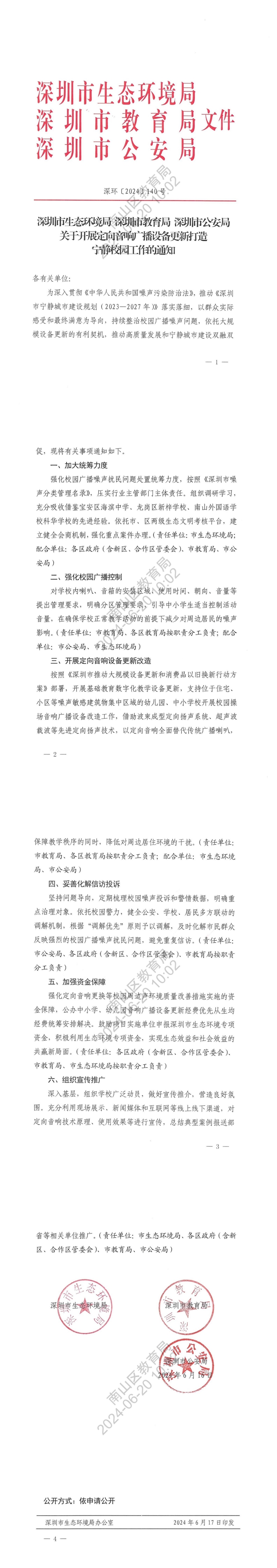 近日,深圳市生態(tài)環(huán)境局等三部門聯(lián)合印發(fā)《關(guān)于開展定向音響廣播設(shè)備更新打造寧靜校園工作的通知》,通知表示,為深入貫徹《中華人民共和國噪聲污染防治法》,推動《深圳市寧靜城市建設(shè)規(guī)劃(2023-2027年)》落實(shí)落細(xì),持續(xù)整治校園廣播噪聲問題,依托大規(guī)模設(shè)備更新的有利契機(jī),推動高質(zhì)量發(fā)展和寧靜城市建設(shè)雙融雙促。