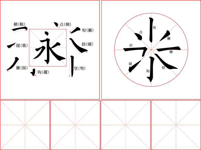 1、文房知識普及:涵蓋毛筆選擇、文房四寶常識、執筆方式詳解、筆法與控筆訓練圖,以及經典“永字八法”訓練模塊,為書法學習奠定扎實基礎。
