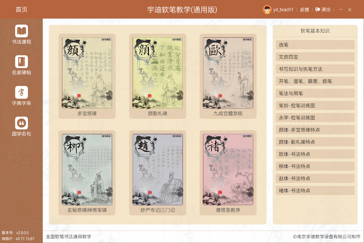 軟件以教育部《中小學書法教育指導綱要》為核心指導,整合國家指定的11套《書法練習指導》配套教材書體,構建“寫字-授課-辦學”一體化書法教育體系,助力書法教學與學習的專業化、系統化。
