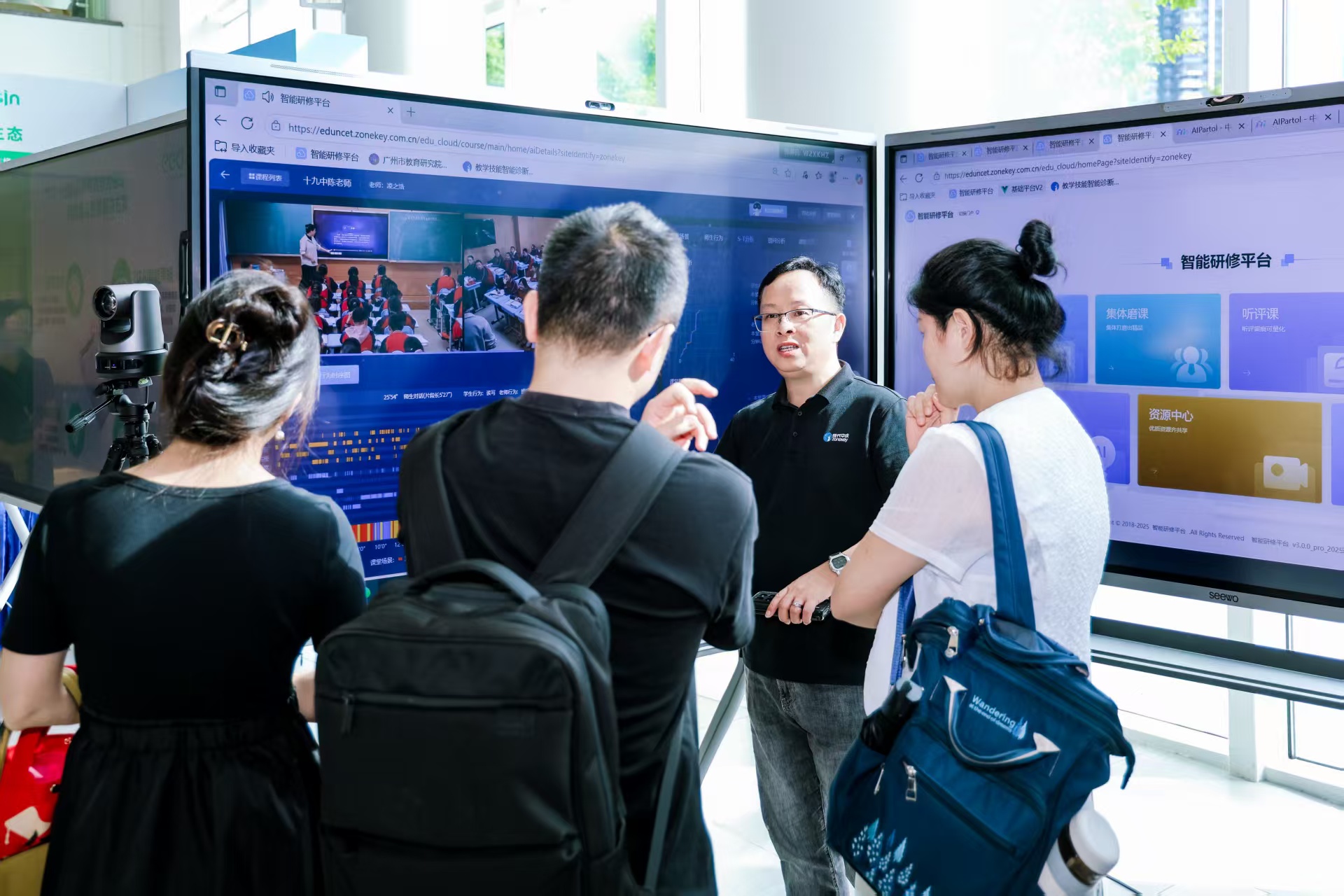 研討會(huì)期間,同時(shí)舉辦的“智能科技教育裝備展”,旨在為參會(huì)者提供一個(gè)直觀、沉浸、互動(dòng)的AI教育場(chǎng)景體驗(yàn)平臺(tái)。現(xiàn)代中慶展出了多個(gè)教育AI應(yīng)用方案。包括AI精準(zhǔn)教研,AI巡課與督導(dǎo),AI教學(xué)技能實(shí)訓(xùn)等,讓與會(huì)嘉賓沉浸式體驗(yàn)了AI賦能下教師專業(yè)成長(zhǎng)和教學(xué)質(zhì)量管理范式的數(shù)字化轉(zhuǎn)變。