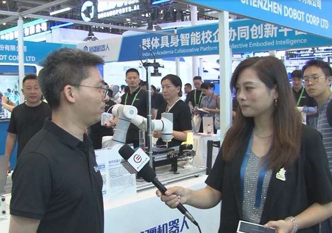 展會現場,深圳市越疆科技股份有限公司教育產品負責人周源接受本站采訪。