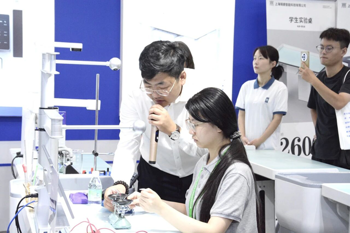 展會期間,上海錫鼎重點(diǎn)展示了勞動教育整體解決方案和AI智慧理化生實(shí)驗(yàn)室整體解決方案兩大創(chuàng)新板塊。