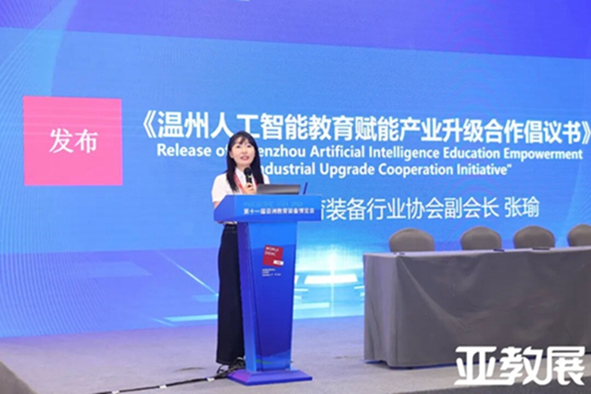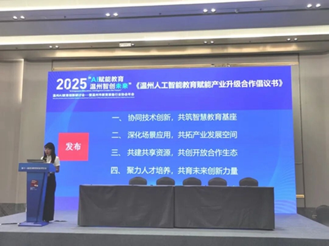 張瑜副會長代表協會正式發(fā)布《溫州人工智能教育賦能產業(yè)升級合作倡議書》。該倡議聚焦協同技術創(chuàng)新、深化場景應用、共建共享資源和聚力人才培養(yǎng)四大方向,為構建協同創(chuàng)新的AI教育新生態(tài)奠定了堅實基礎。