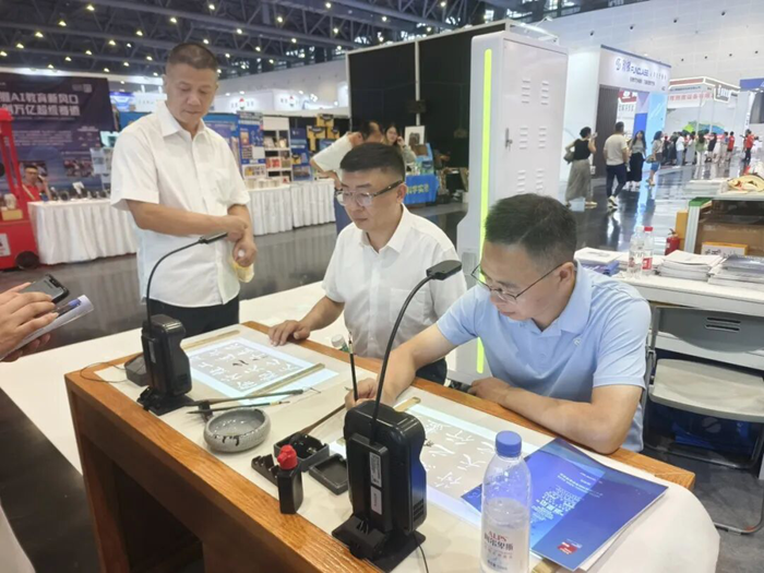 開幕當天,羿飛教育展位便成為展會焦點,現(xiàn)場人頭攢動,咨詢、體驗的參會者絡繹不絕 —— 既有來自全國各地的學校校長、學科教師,也有海外教育機構代表與行業(yè)合作伙伴。不少參會者在親身體驗產品后表示,羿飛教育的設備 “精準踩中了教學需求痛點”,尤其是數(shù)字臨摹學習臺,既保留了學科教學的專業(yè)性,又通過科技手段提升了課堂互動性,在 教學領域具有極高的應用價值。