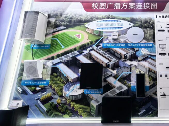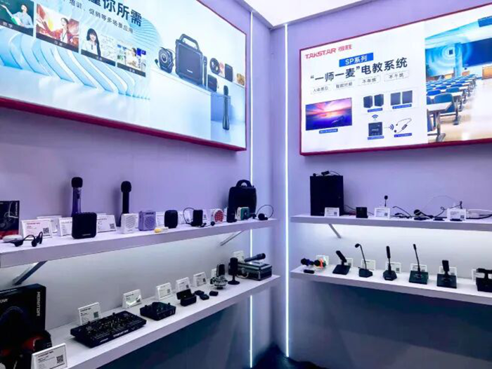 展會現場,得勝展出了涵蓋教室擴音、會議擴聲、IP廣播等多個場景的專業音頻設備,全面呈現了其為教育行業量身定制的聲音解決方案。