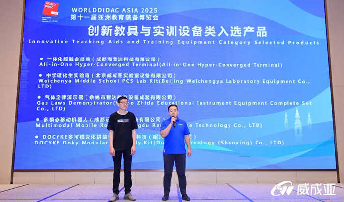 2025年9月17日至19日,第十一屆亞洲教育裝備博覽會暨人工智能教育大會(WORLDDIDAC ASIA 2025.簡稱:亞洲教裝展)在杭州大會展中心盛大開啟。作為全球教育裝備領域的頂級盛會,亞洲教裝展的國際化程度極高,吸引了來自近30個國家和地區的教育文化機構、企業與院校參展。此外,亞洲教裝展集中展示了全球領先的教育裝備與技術,成為此次展覽的一大亮點。作為世界教具聯合會的會員單位,威成亞期望借助世教聯的影響力和領導地位,進一步深化國際教育領域的交流與合作。此次,威成亞攜多款創新教育裝備亮相亞洲教裝展,不僅彰顯了其在教育技術領域的深厚底蘊,更通過AI技術的深度整合,為全球教育者提供了智能化、個性化的教學解決方案。