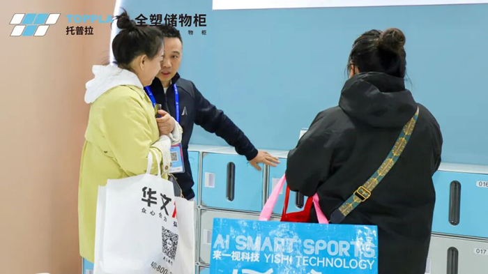 面對現場用戶的疑問,托普拉工作人員一一耐心解答。全塑儲物柜憑借其模塊化設計、環保材質和智慧賦能,不僅滿足教室空間高效利用的需求, 更以“硬件+數據”的雙重賦能,使儲物柜從靜態設施升級為校園數字化生態的重要節點。