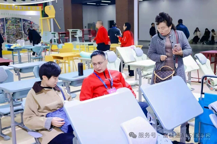 產品區中,多款課桌椅充滿設計感,并以人體工學設計保障學習舒適度與安全性;午休課桌椅則憑借硬核實力脫穎而出 —— 作為江蘇省午休課桌椅地方標準起草單位,其產品嚴格符合國標,江蘇省標雙重標準,更以靈活折疊設計實現 “課用 - 午休” 轉換,節省空間適配校園需求。現場教育工作者駐足體驗,對產品的專業標準與實用價值高度認可。