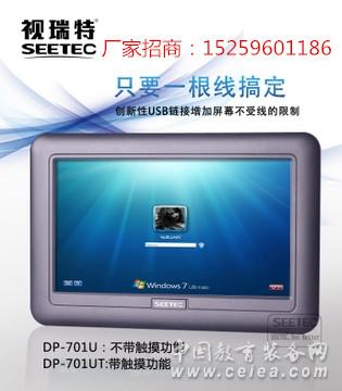 產品詳細介紹產品介紹 DP701T富威德FEELWORLD詳情 (3) 產品概述: DP701T 是一款7英寸、USB 供電的TFT液晶顯示器。 DP701T 采用全新的高質量的液晶屏,具有800x480的分辨率, 250cd/m2 的高亮度,以及L/R=140°, U/D=120° 的廣闊視角, 可以清晰地顯示圖像。 產品采用LED背光源,具有節能、使用壽命長、環保等優勢 只需要一條USB數據線!無需電源,VGA等其他接口。顯示連接芯片,支持Windows系統,Mac系統。 復制 復制主顯示器圖片,輕松處理多圖要求 DP701T富威德FEELWORLD詳情 (4) 擴展 可擴展主顯示器圖片,擴大顯示區域,方便多任務處理。 DP701T富威德FEELWORLD詳情 (5) 主顯示器 可設置為主顯示器,處理所有特殊要求。 原顯示器將被關閉。 DP701T富威德FEELWORLD詳情 (6) 一臺PC可同時連接6臺USB顯示器 可用于會議或學校等場合。 DP701T富威德FEELWORLD詳情 (7)