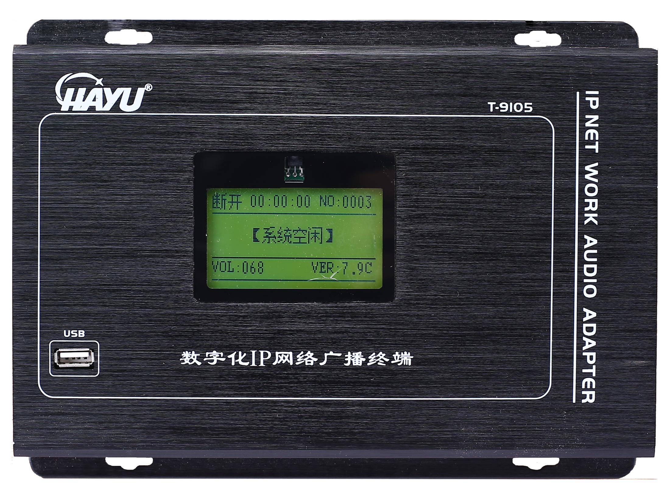 產品詳細介紹壁掛式IP網絡終端機,3寸高亮LCD屏(分辨率128*64),人機操作使用遙控鍵盤,通過液晶屏顯示菜單,能通過網絡接收IP網絡廣播服務器遠程傳輸的音頻文件和控制信號; 內置2*20W雙聲道立體聲功率放大器,能直接外接音箱進行播放; 本地具有兩個10/100M RJ45網絡交換機接口,接口無輸入輸出之分; 本地具有一個雙聲道線路輸入接口、一個話筒輸入接口,一個線路輸出接口,在本地能外接話筒以及線路輸入設備進行本地擴聲,能對本地話筒及線路輸入音量進行調節,能輸出至功放進行擴聲; 支持DHCP自動獲取IP地址; 音頻采用硬解碼形式,集成IP網絡硬件解碼模塊,可接收來自服務器遠程傳送的音樂進行實時播放,同時能接收廣播呼叫功能; 能脫離網絡獨立運行,如應用在多媒體教室中,既可作為廣播的終端機,也能當作多媒體教室的功放音箱使用,終端機自動切換到廣播狀態,廣播完畢后,又可作為多媒體教室教學使用; 配置了遙控器,可點播服務器中音頻文件,可輕松控制節目的快進、快退,播放、暫停及書簽設置,具有順序、循環等多種播放模式; 具有USB接口,支持U盤播放和錄音,能將本地老師上課的內容進行實時錄制; 支持全雙工雙向對講功能,自帶回聲消除; 具有終端饋送功能,可直接通過終端本地操作或通過IP廣播軟件操作將能將任意一個終端的聲音通過網絡傳送到其它指定的一個或多個終端; 音頻文件支持MP3,WMA,OGG等格式,廣播最高可位速率:192K/S(44.1,16); 具有三級信號優先功能,高級別可打斷低級別的廣播; 可選配模擬廣播備份模塊,當網絡廣播出現故障時,終端機自動切換到模擬廣播; 可選配0.3A-24V強切模塊,可控制打開強切音量開關; 可選配監聽模塊,可對終端現場進行監聽。 2路RJ45網絡接口,1路線路輸入,1路話筒輸入,1路線路輸出,1路左右聲道定阻接口,1路模擬備份定壓輸入接口,1路24V強切電源輸出口,1路220V電源。 |