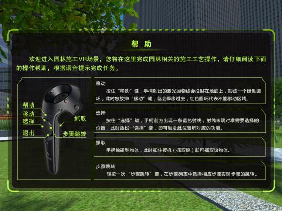 產品詳細介紹 園林工程施工VR實訓軟件是一款結合行業規范、貫穿教學重難點、引用項目型教學模式,實現園林施工虛擬現實及工藝流程動態演示、人機交互式操作。根據工程施工節點結合教學課本定制教學任務,貫穿項目制教學的教學思路,將園林施工工藝要點動態展現,以一個施工的流程順序進行模塊劃分,具有很強的職業性、情景性、過程性與互動性。 1.系統采用虛擬仿真技術,按照實際工程1:1比例進行情境設計,力求還原真實施工場景。模擬效果逼真,學習者可以在場景中任意走動,支持全場景360°無死角漫游交互體驗。 2.任務操作步驟可根據老師課堂教學進度實際需求自主進行點選跳轉,各個步驟在教學設計上都有對應的知識點及相關描述方便教學。 3.系統配有任務操作說明提示文字和語音,在進行每個操作任務步驟時。 4.在場景中需要用到的工具會高亮顯示,學習這通過VR設備走到該工具處,通過VR設備拿起該設備,放到工具使用的位置,開始施工。 5.通過手柄按鈕,調出功能界面,可觀看該操作任務的全息視頻視頻,視頻可根據任務流程步驟關鍵點跳選觀看。 6.系統設置圖紙查看功能,通過手柄按鈕,調出功能界面,查看操作任務對應詳細圖紙。 7.操作完成后彈出質量通病界面,按種類講解本模塊將會遇到的關于質量上的通病。 8、通過VR手柄,可查看操作幫助,方便第一次使用者快速掌握操作方法。 |