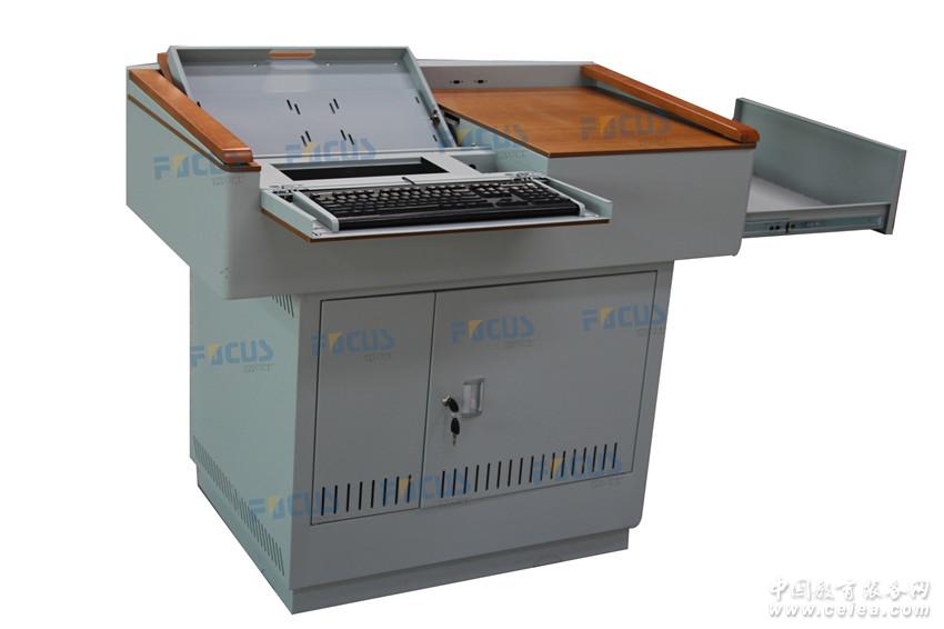 產(chǎn)品詳細(xì)介紹參數(shù): 1、講桌采用鋼木結(jié)合構(gòu)造,桌體上部分采用圓弧設(shè)計。講臺整體設(shè)計符合人體力學(xué)原理,提供左右木質(zhì)扶手,供使用者扶用。 2、桌面由一把機(jī)械鎖控制,采用環(huán)環(huán)相扣設(shè)計,顯示器蓋板、鍵盤和展示臺抽屜逐步打開。操作更簡易,使用更安全。 3、講桌桌面采用木質(zhì)耐劃臺面,防火、防塵、防水、耐刮花,整體布局簡潔、美觀。 4、講桌主體材料采用1.5mm冷軋鋼板,其他輔助部門采用1.2mm冷軋鋼板。桌子正面可根據(jù)客戶需求絲印學(xué)校LOGO。 5、講桌上下層采用分體式設(shè)計,桌面部分和桌體部分自成一體,方便進(jìn)出設(shè)計比較窄的教室門。講桌內(nèi)置固定螺絲孔位,安裝簡單,安全防盜;獨(dú)立包裝,運(yùn)輸輕便。 6、顯示器蓋板和鍵盤部分采用翻轉(zhuǎn)式設(shè)計。顯示器蓋板可裝置17-19寸液晶寬屏顯示器;鍵盤下面放置一體中控或者分體中控系統(tǒng)。 7、右側(cè)抽屜可放置實(shí)物展示臺,關(guān)閉后,所有設(shè)備都隱藏在講臺內(nèi);。 8、桌面集成USB接口模塊兩個,可預(yù)留VGA\網(wǎng)絡(luò)\Audio接口。 9、講桌桌體下層內(nèi)部采用標(biāo)準(zhǔn)機(jī)柜設(shè)計,帶層板,所有設(shè)備可整齊固定。 10、關(guān)閉尺寸:1150*680*950(長寬高)MM。 11、產(chǎn)品通過ISO9001:2008質(zhì)量管理體系認(rèn)證,通過國家3C認(rèn)證,通過歐盟CE出口認(rèn)證,通過ISO14001環(huán)保認(rèn)證,擁有獨(dú)立的知識產(chǎn)品,專利號為: ZL 201130492984.7(國家知識產(chǎn)權(quán)網(wǎng)可查) 12、講桌、中控為同一品牌。 |
