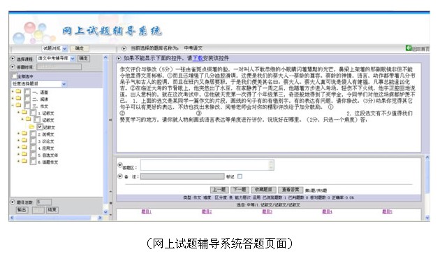 東方中原試題輔導(dǎo)系統(tǒng)主要面向教師群體和學(xué)生。它包括智能測試、綜合測試、試題瀏覽、試卷瀏覽、個(gè)人信息、下載專區(qū)等常用功能。用戶可對題目進(jìn)行自測試或聽取不同名師對題目或試卷的不同講解,可以有效地理解題目,從而舉一反三,尋找到科學(xué)的解題方法,最終實(shí)現(xiàn)解題能力的不斷提高;系統(tǒng)還提供了自動(dòng)判題功能,組卷功能,查看答案和解題過程功能;標(biāo)識(shí)做過的試題功能。可對試題進(jìn)行注解,若再遇上該題時(shí)可閱讀這些注解。