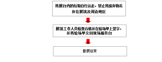 -展會期間,所有成箱的物品出門(包含展品和其他物品)必須先到“現場服務處”開具“出門單”。