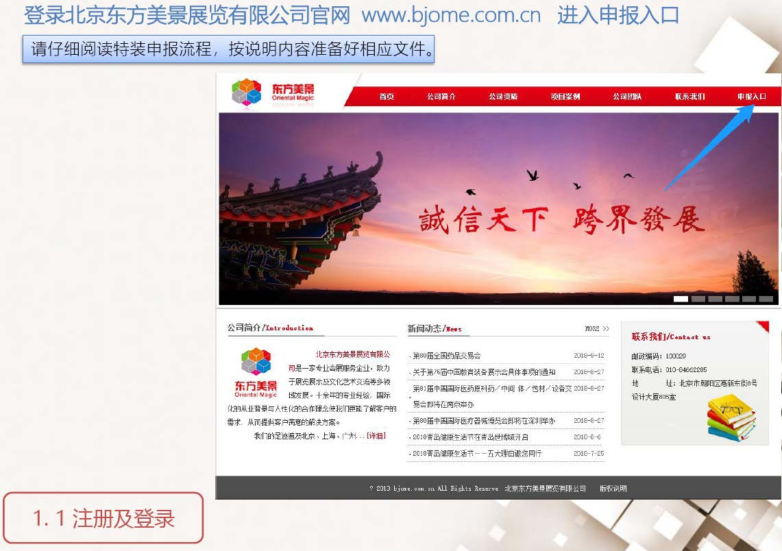 1)預審:將報館文件掃描件上傳至北京東方美景展覽有限公司網報系統(tǒng)(www.bjome.com.cn/declare.html);