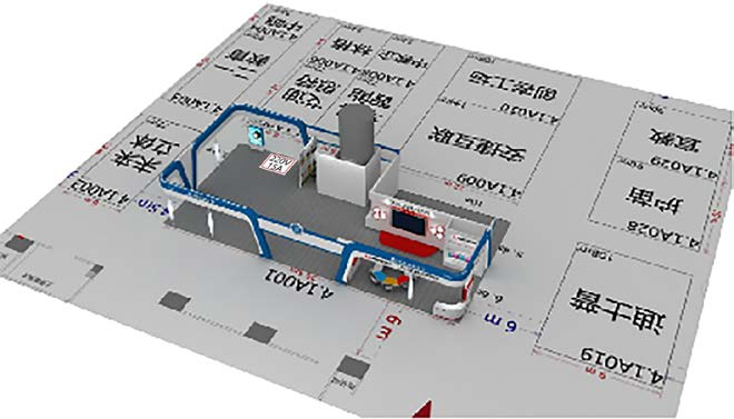 3)展廳位置圖:需標注整體展臺方案在展館內所處位置及方向。