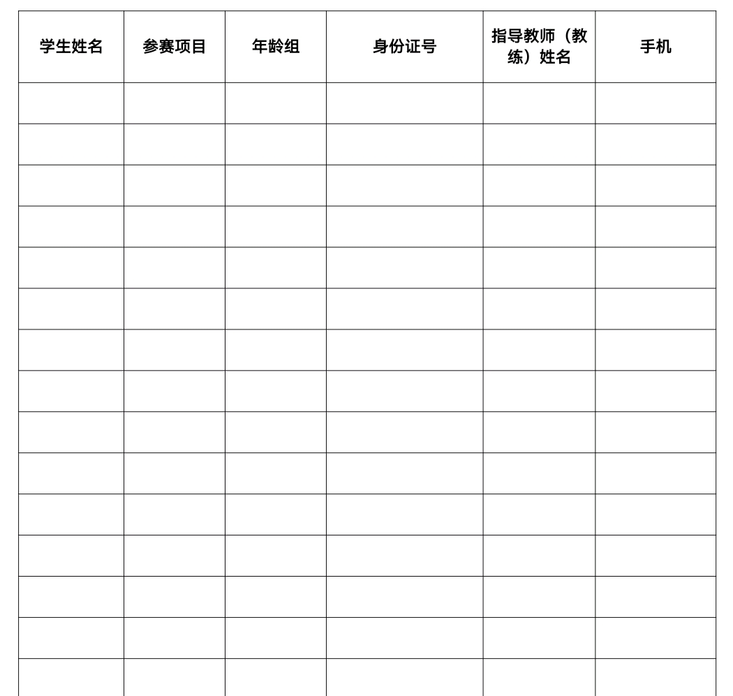 注:組別需填寫男子或女子組及所在的年齡組,例:男子9-10歲組;指導教師(教練)限報2名